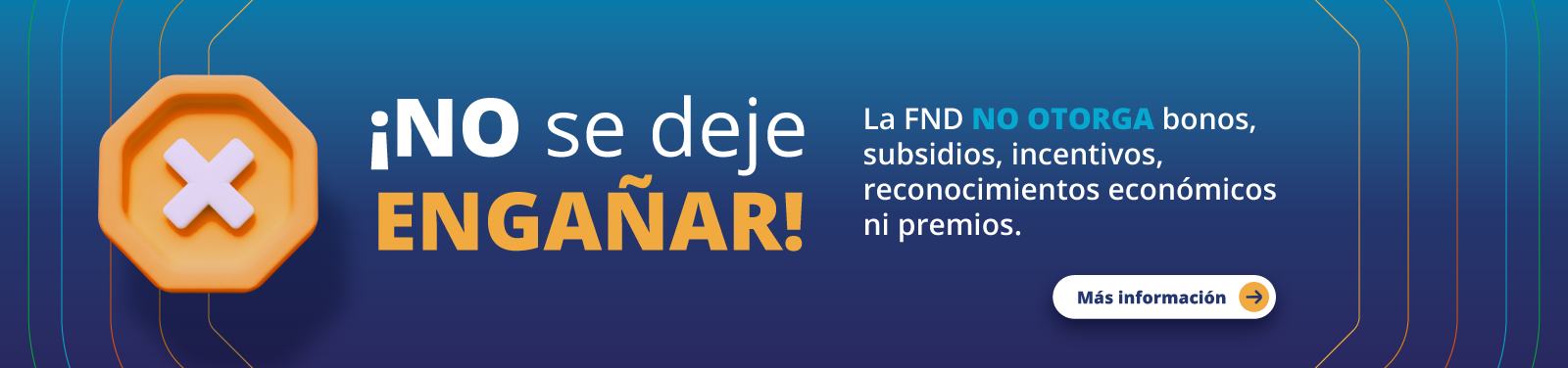 La Federación Nacional de Departamentos (FND), se permite informar a la ciudadanía en general, que no está ofreciendo bonos, subsidios, incentivos, reconocimientos económicos ni premios de ningún tipo